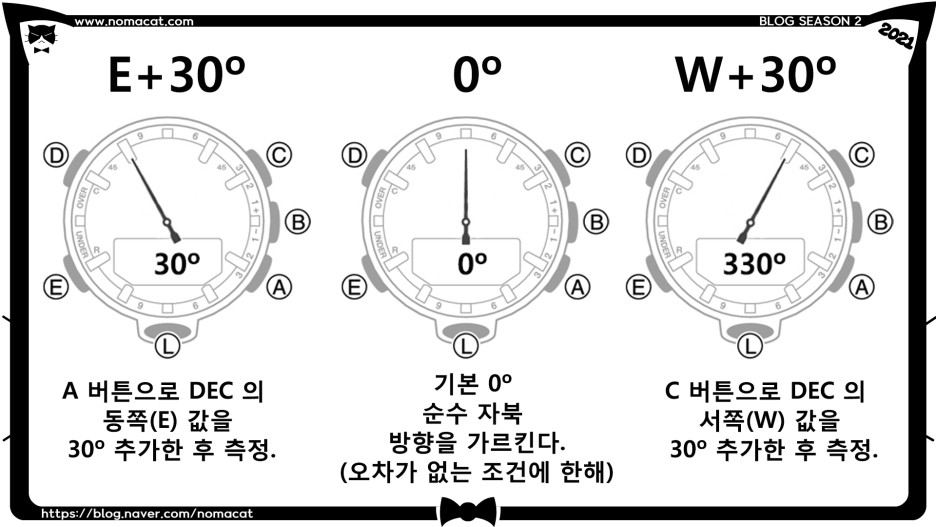 시계로 방위를 측정할 때는 가급적 정확하게 측정이 되어야 합니다.