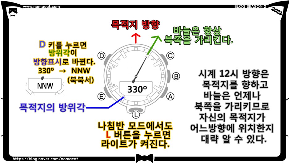 시계의 디지털 화면에는 내가 가야 할 방위각 또는 방향이 표시되겠죠.