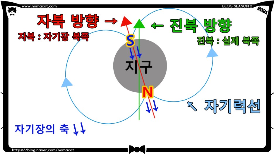 나침반 모르시는 분들은 그냥 바늘이 북쪽이라고만 아실 텐데,